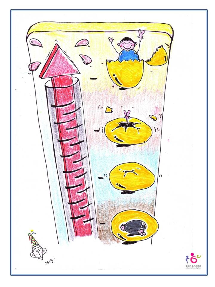 傑傑今年五歲,他因自信心不足、不善於表達自己,被安排接受遊戲治療。傑傑在首幾次治療中,不敢自行拿起玩具來玩,表現害羞。每當他想玩某種玩具時,總會望向我,並展露出一個疑惑的眼光「我可以玩這個嗎?」傑傑得到多次肯定及接納回應後,他逐漸了解自己的優點,勇於跟我分享他的作品,表現顯得有信心。